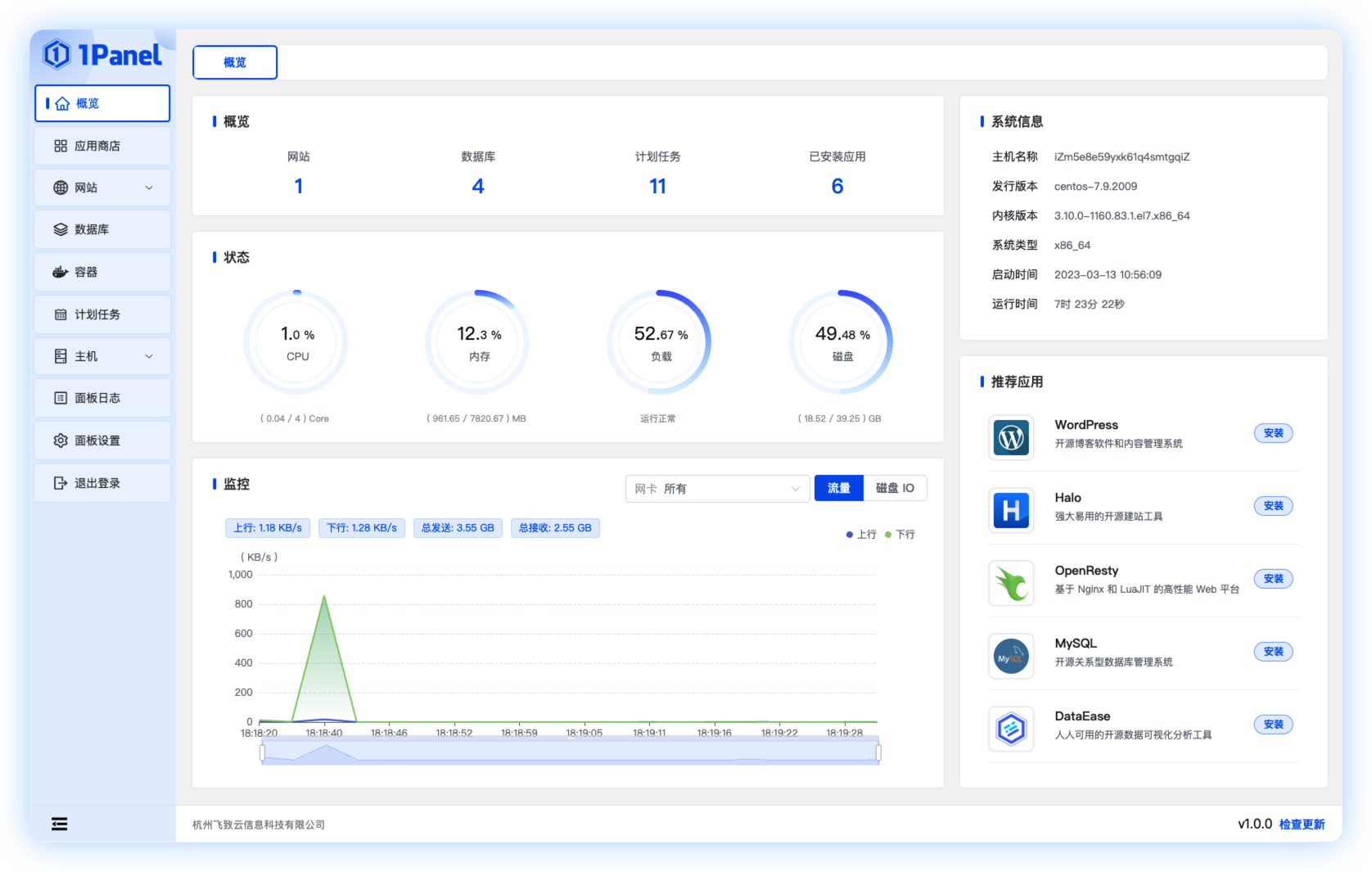 对于大家所推荐的目前我知道的有:URLOS、1Panel、大圣面板(猫王面板,最初的 mdserver-web),大概就是这三个,我也又去初步了解和简单的体验过,最后自我感觉 1Panel 的体验会更不错。
